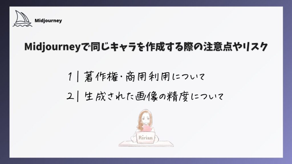 Midjourneyで同じキャラを作成する際の注意点やリスク