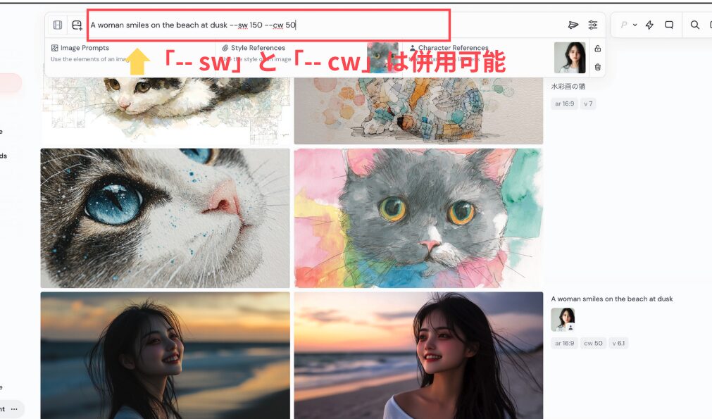 これは、Midjourneyが「全体的な雰囲気や特徴」を重視する仕組みになっているためです。もし細部まで完璧に揃えたい場合は、生成を何度か繰り返して、最も近いものを選ぶと良いでしょう。