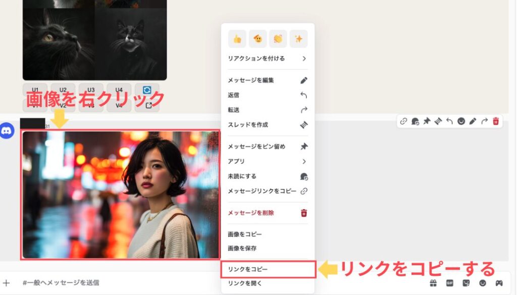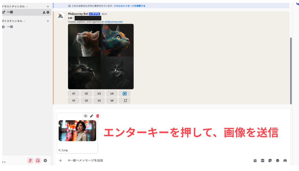 Discord版で参照画像を使うには、まず画像をDiscordにアップロードする必要があります。