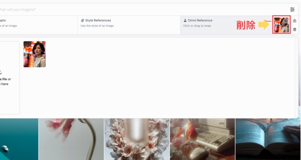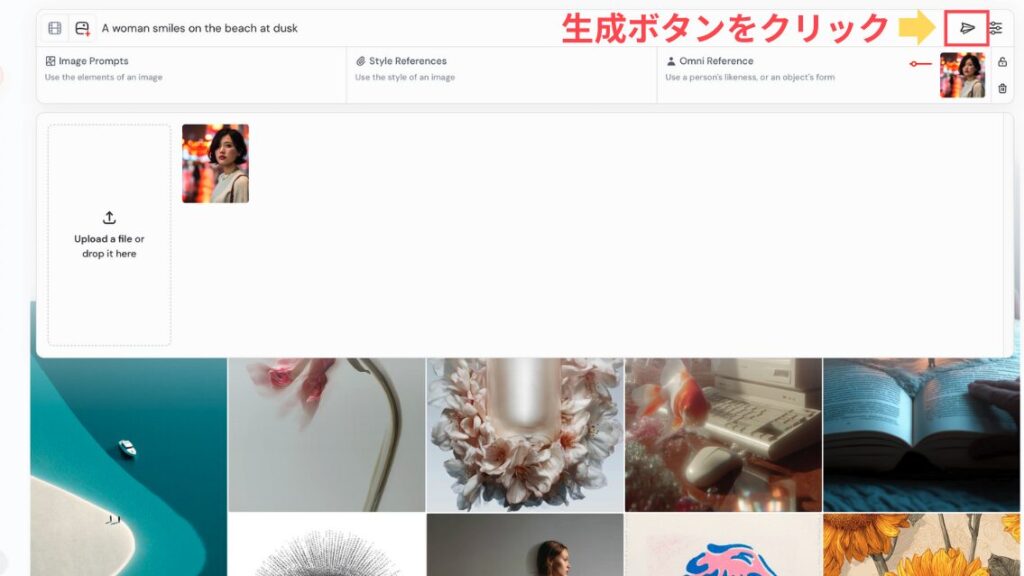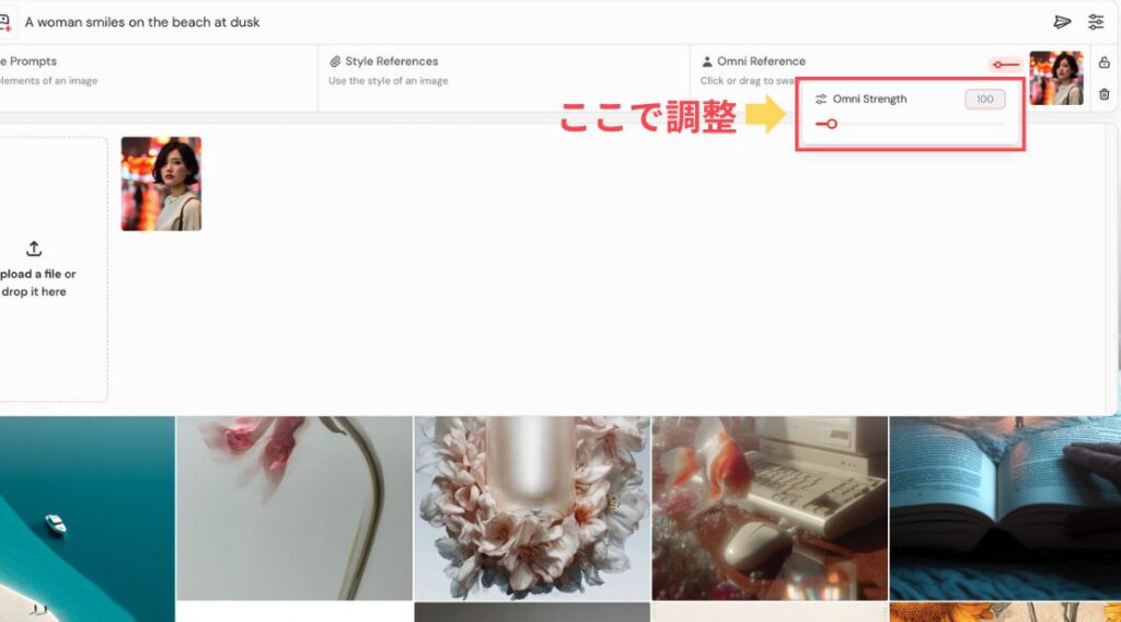 使いたい画像を「Omni Reference」のセクションに直接ドラッグ&ドロップします。