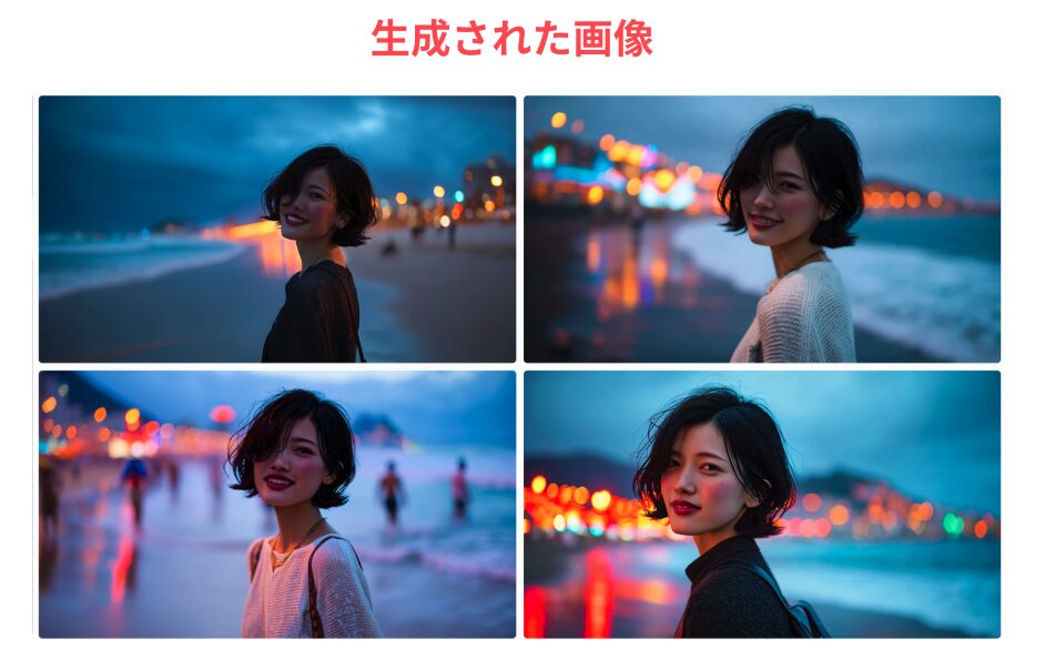 「完全に同一のキャラクター」を求める場合は、複数回生成して最も近いものを選ぶか、後から画像編集ツールで調整する必要があります。
