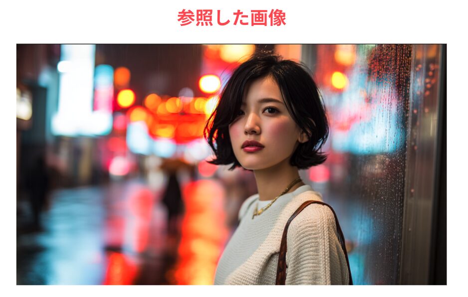 - 数値が小さい(例:50): 参照画像の雰囲気を少しだけ反映。プロンプトの指示を優先。