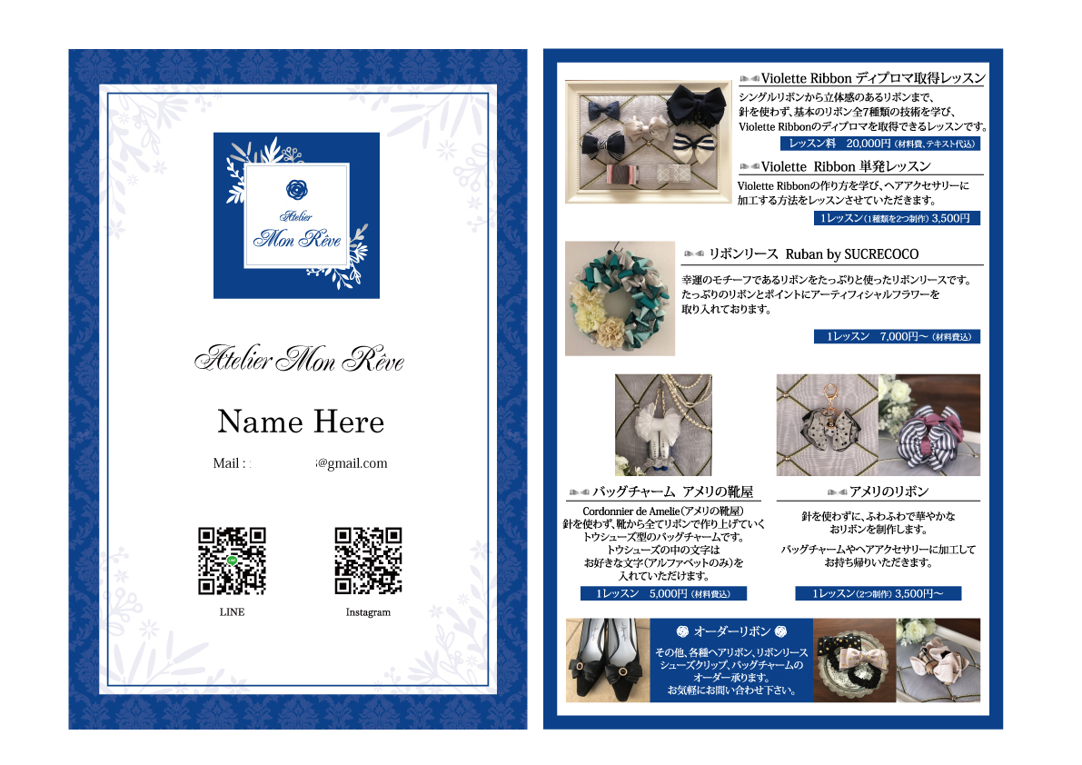 表はサロン情報、裏にはレッスン情報を記載しております♪