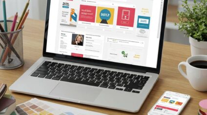 女性デザイナーがサロンのショップカードやロゴ・リーフレットを作成